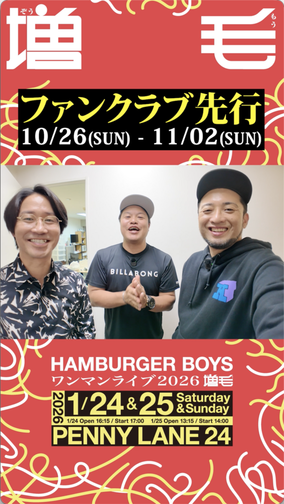 有料会員限定 FC先行販売 10/26〜スタート FC先行チケット HAMBURGER BOYS - ハンバーガーボーイズ 2025/10/26 17:50 フォロー Bitfan IDでログイン パスワードを忘れた方はこちら ログインできない場合 ログインしたままにする または Xでログイン Facebookでログイン Bitfan IDとは Bitfan IDを未登録の方 Bitfan IDとは何ですか Bitfan IDは本サービスを利用するために必要なアカウントとなっております。 外部SNSアカウントを利用したご登録、または任意のメールアドレスとパスワードを利用したご登録ができます。
